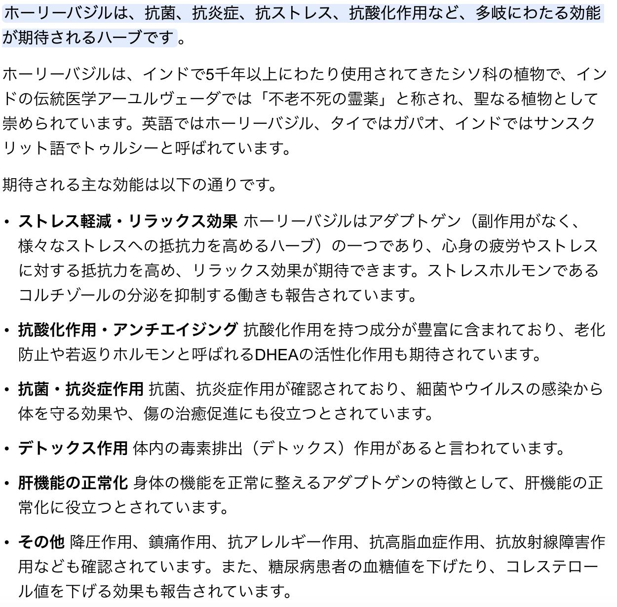これらのミネラルは、ホーリーバジルを摂取することで、健康維持に役立つと考えられています。